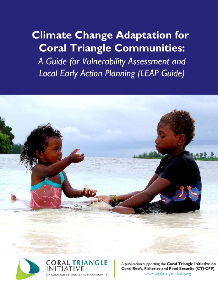 The guide called Climate Change Adaptation for Coral Triangle Communities: A Guide for Vulnerability Assessment and Local Early Action Planning (LEAP) is a comprehensive set of cutting-edge scientific and social instruments that local governments and communities can use to conduct climate outreach to their constituents. It can be used to help communities assess their vulnerability to climate change and help them form their own climate change adaptation plans that address local conditions.