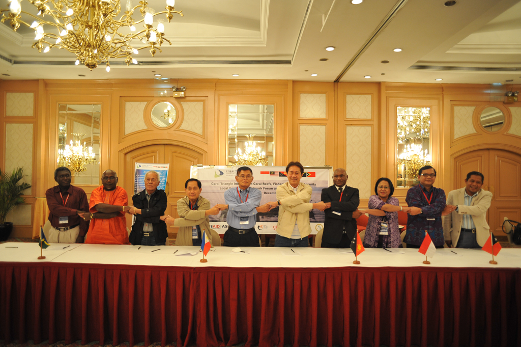On December 6, 2012, local government leaders from Coral Triangle member countries - Indonesia, Papua New Guinea, Philippines, and Solomon Islands- gathered in Manila, Philippines and signed a declaration advocating for stronger and more direct engagement with the Coral Triangle Initiative on Coral Reefs, Fisheries, and Food Security (CTI-CFF) and its bodies including the CTI-CFF Regional Secretariat and National Coordinating Committees.