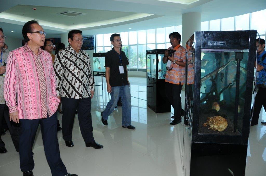 Lower Right: Coordinating Minister for Welfare Affairs, Agung Laksono and Minister of Marine Affairs and Fisheries, Sharif C. Sutradjo inspected the Gallery of Ornamental Fish exhibition at the second floor.