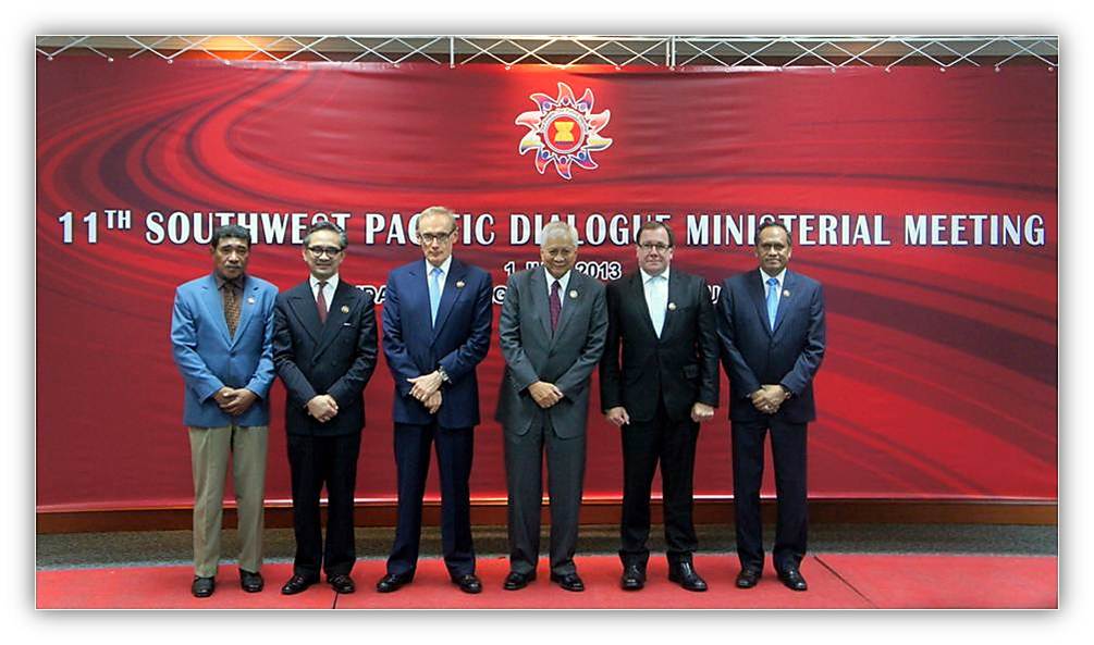 This year’s 11th SwPD Ministerial Meeting was attended by Foreign Affairs Secretary Albert Del Rosario of the Philippines, Foreign Minister Bob Carr of Australia, Foreign Minister Marty Natelagawa of Indonesia, Foreign Minister Murray McCully of New Zealand, Foreign Minister Jose Luis Guterres of Timor-Lest, and High Commissioner Veali Vagi of Papua New Guinea.