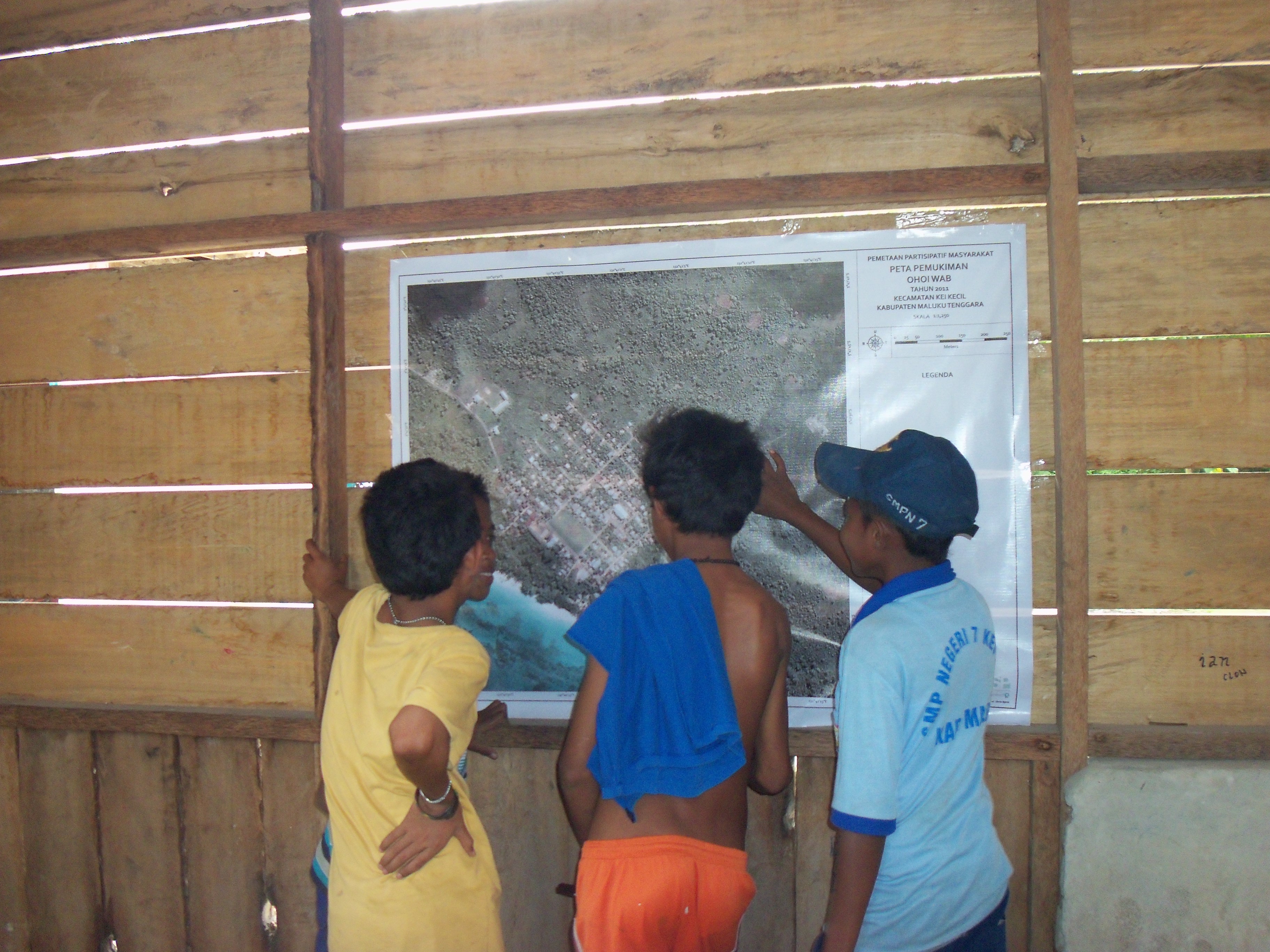 Students of Ohoi Wab Ngufar Junior High School reading a village map