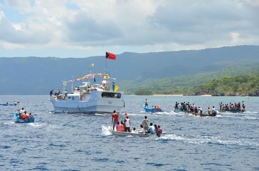 Lower Righyt: Local fishermen in their boats at the launch of Timor-Leste's first ever "no-take zones" Credit: USAID CTSP