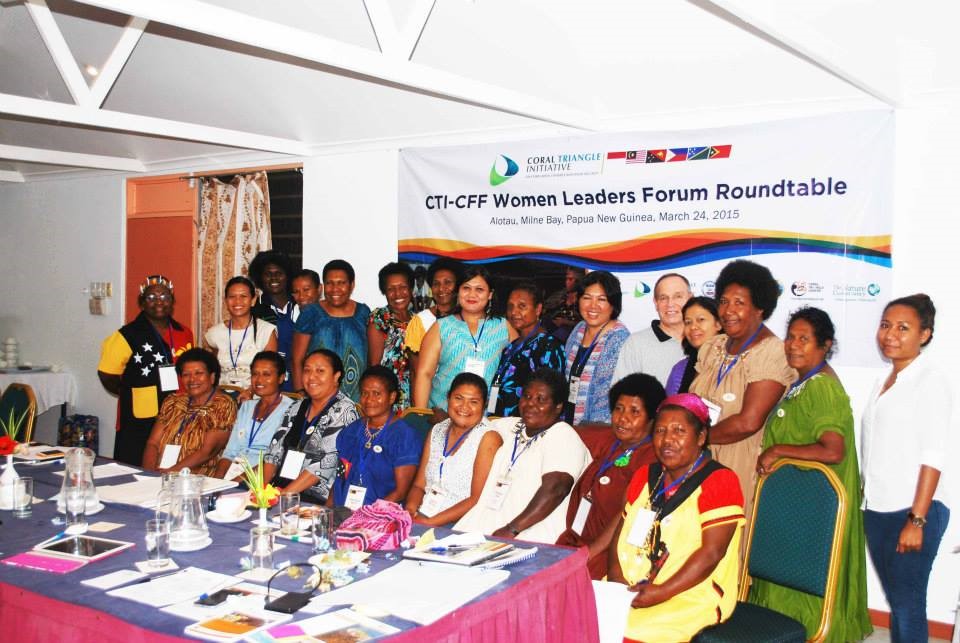 The CTI-CFF Women Leaders’ Forum Roundtable was held in Alotau, Milne Bay on March 24, 2015 where 25 women leaders from coastal communities in Papua New Guinea (PNG) committed to work together, share experiences, inspire each other, and find ways to strengthen their capacity in leading marine and coastal resource conservation projects during the first ever gathering of women engaged in marine conservation and sustainable fisheries. During the forum, the women elected focal points and a secretariat for the WLF in PNG. The PNG Conservation and Environment Protection Authority, The Nature Conservancy, USAID-USDOI-CTC organized the forum.